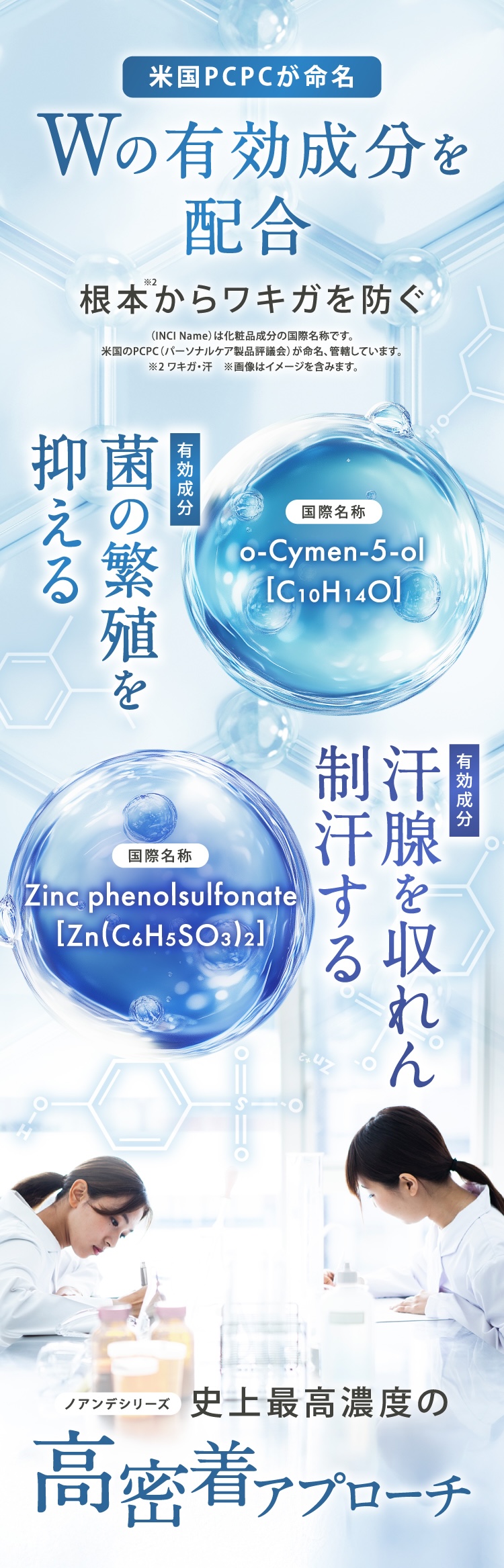 | その他の成分 | 柿タンニン、茶エキスー1、シャクヤクエキス、アーティチョークエキス、セイヨウナシ果汁発酵液、ヒメフウロエキス、スターフルーツ葉エキス、ハマメリス エキス、ステアロイルフィトスフィンゴシン、スフィンゴ糖脂質、ワレモコウエキス、ヨクイニンエキス、グリチルリチン酸2K、アロエエキスー1、ローズマ リーエキス、マロニエエキス、アルニカエキス、セイヨウキズタエキス、オトギリソウエキス、ブドウ葉エキス、プラセンタエキスー1、セージエキス、ラベン ダーエキスー1、ヒアルロン酸Naー2、アセチル化ヒアルロン酸ナトリウム、加水分解ヒアルロン酸、サクシニルアテロコラーゲン液、3ーOーエチルアスコルビン酸、ビタミンCテトライソパルミテート、ビタミンCリン酸Mg、天然ビタミンE、ラウロイルグルタミン酸ジ(フィトステリル・オクチルドデシル)、メン トール、濃グリセリン、クエン酸Na、架橋型ポリエーテル変性シリコーン混合物、ジメチコン、架橋型ジメチコン、シクロペンタシロキサン、PEGー9ポリジ メチルシロキシエチルジメチコン、水添大豆リン脂質、セリサイト、メチルハイドロジェンポリシロキサン、架橋型シリコーン・網状型シリコーンブロック共 重合体、塩化Na、BG、ジエチレントリアミン5酢酸5Na液、エタノール、フェノキシエタノール |